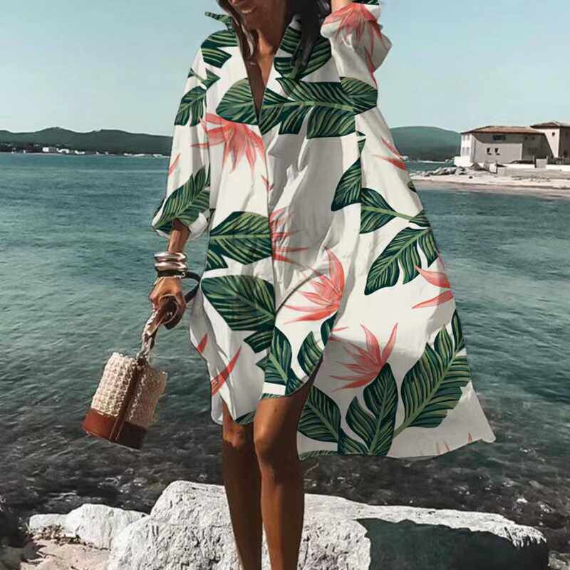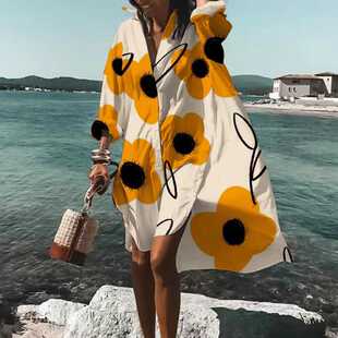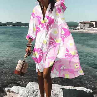 裙子遮肉 连衣裙衬衫 欧美波西米亚宽松大码 沙滩裙度假防晒衣罩衫