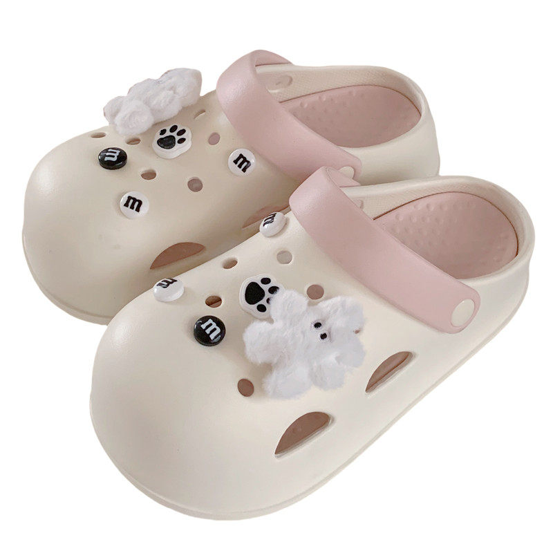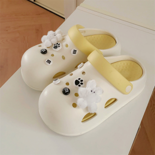 女拿铁色凉拖鞋 夏季 包头洞洞鞋 舒适厚底休闲可爱毛绒小兔防滑新款