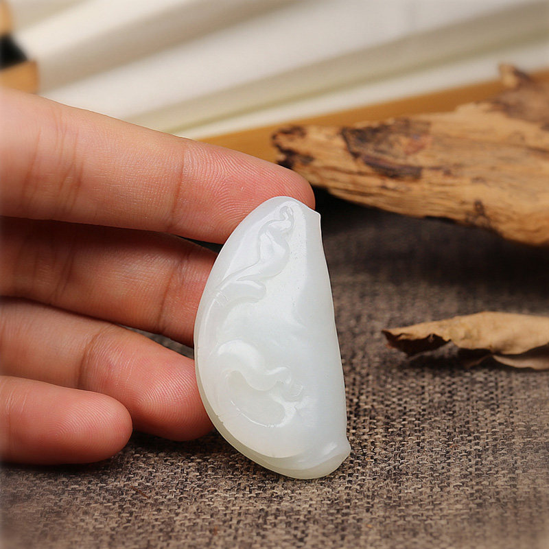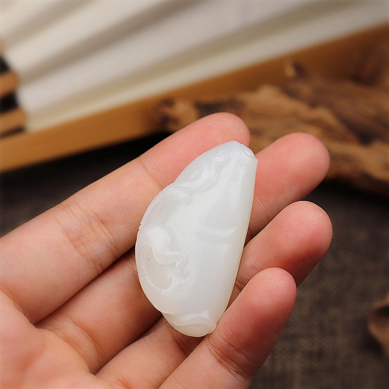 原料和田玉挂件白玉兰花吊坠原石男士 手工雕件花卉项链收藏 女款