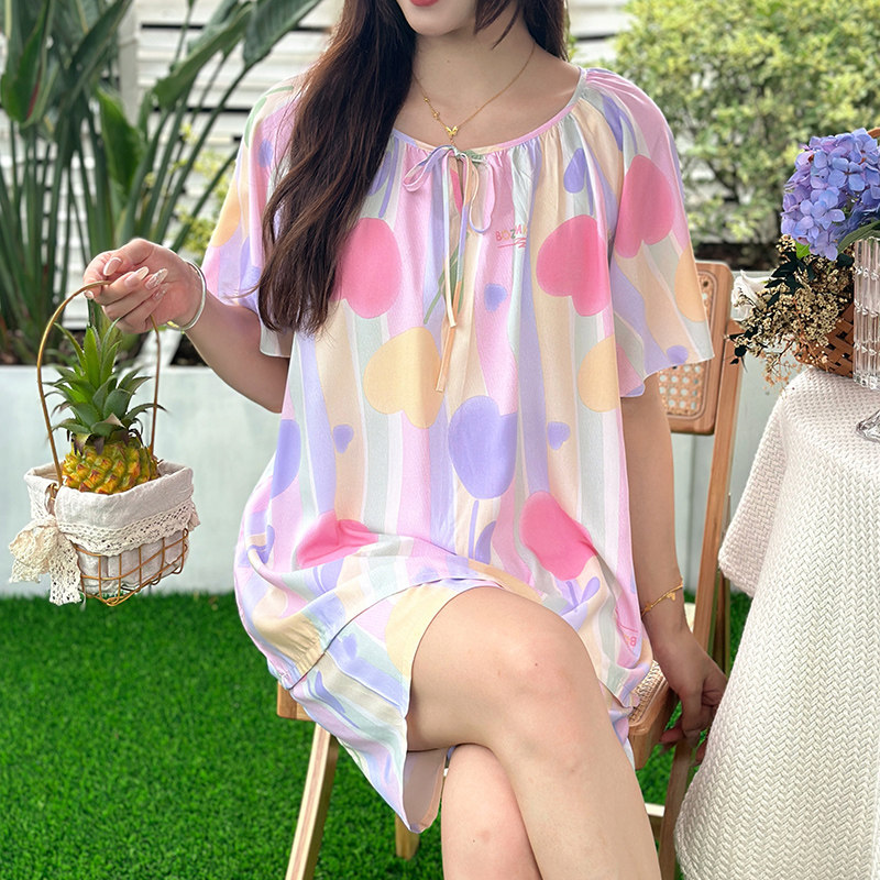 长裤 夏天纯棉短袖 家居服条纹加大码 休闲开衫 悦内睡衣女款 套装 夏季