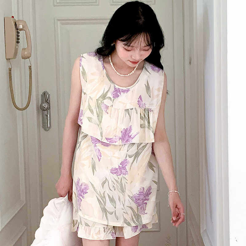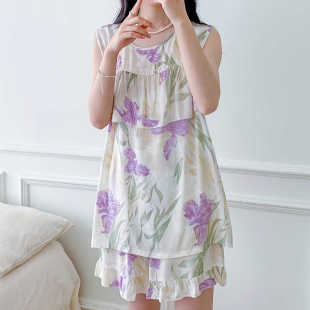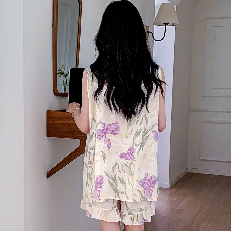 防凸点背心短裤 宽松百搭可外穿绵绸家居服 人造棉绸睡衣女夏天薄款