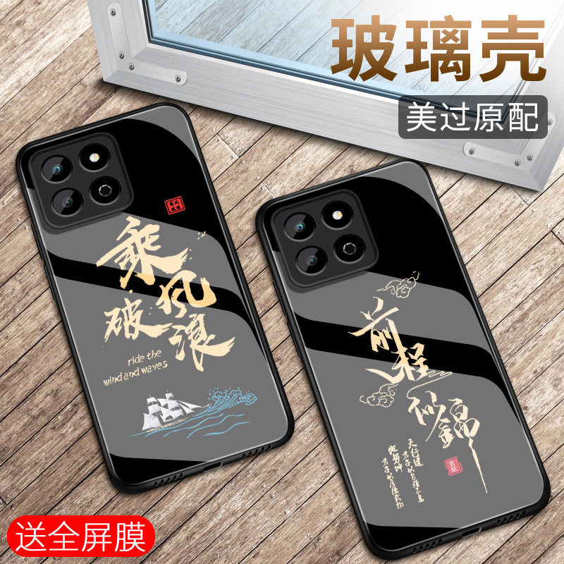 适用华为荣耀畅玩60plus手机壳新款 50plus玻璃硬壳40c保护套60A外壳70plus前程似锦honor40s防摔软壳 60m男士
