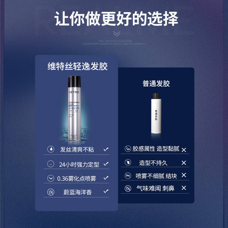 VETES维特丝轻逸劲塑发胶定型喷雾男士 持久造型自然蓬松干胶摩丝