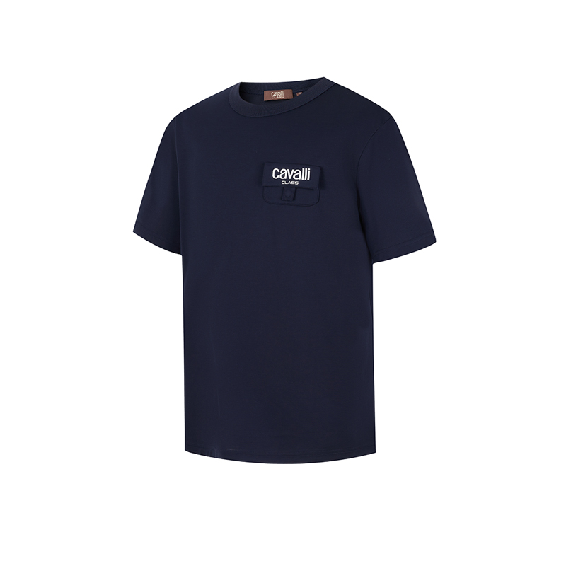 Cavalli T恤男胸前小口袋休闲体恤上衣潮 Class卡沃利logo印花短袖