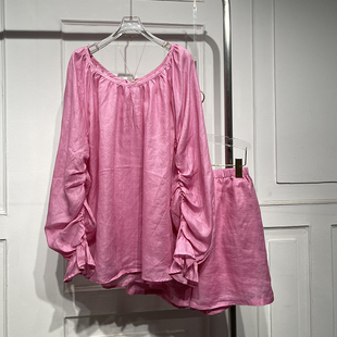 高腰短裤 抽褶苎麻衬衫 女洋气夏季 新款 潮 时尚 舒适减龄套装 防晒长袖