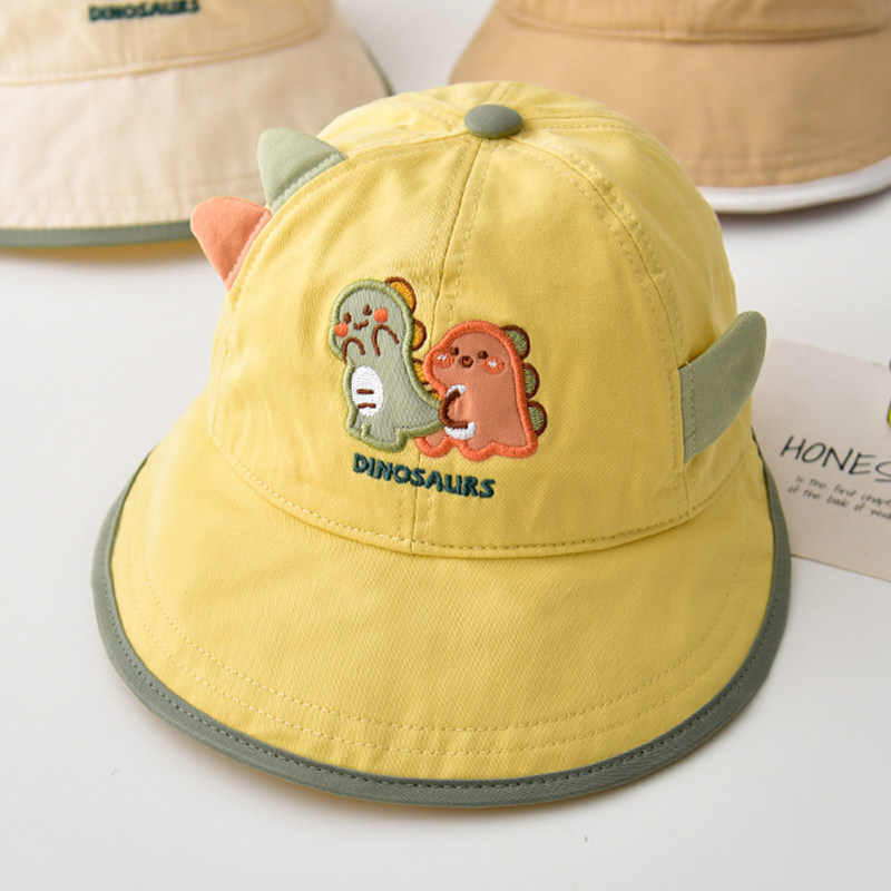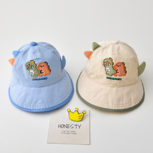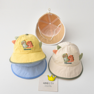 儿童帽子春秋款 恐龙透气大帽檐鸭舌帽男女宝宝遮阳防晒渔夫帽幼儿