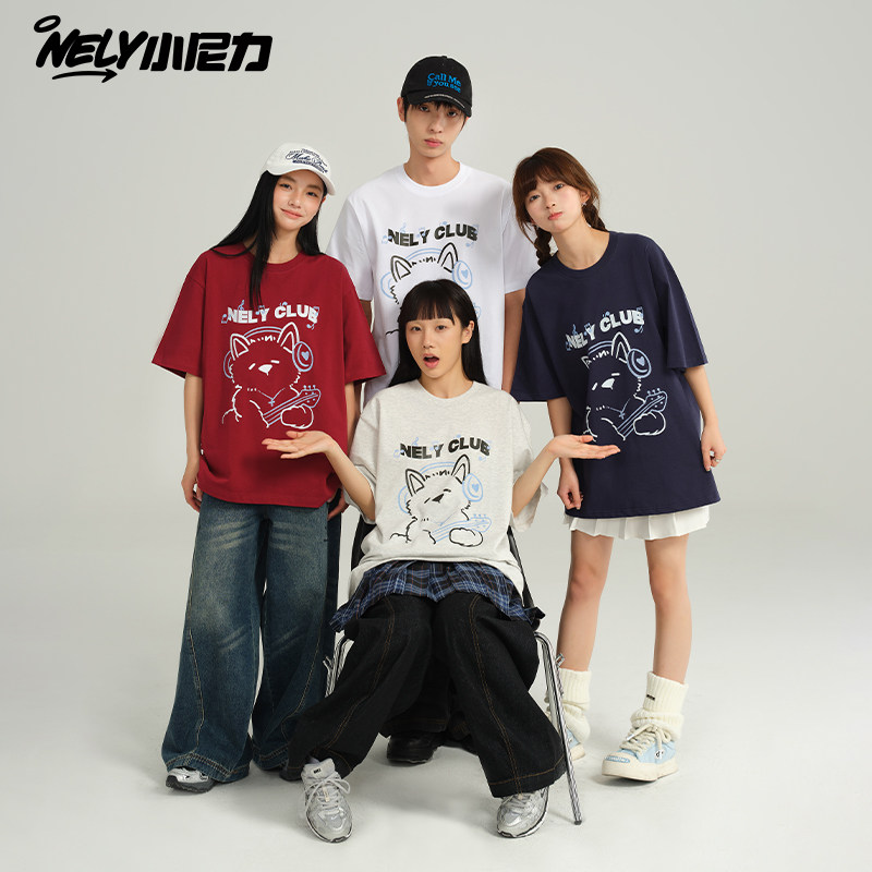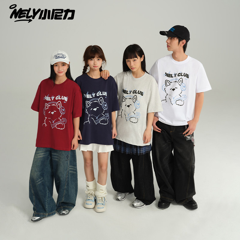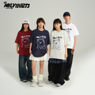 潮牌 t恤情侣国潮宽松t恤男女潮牌小熊印花纯棉ins体恤衫 夏季 短袖