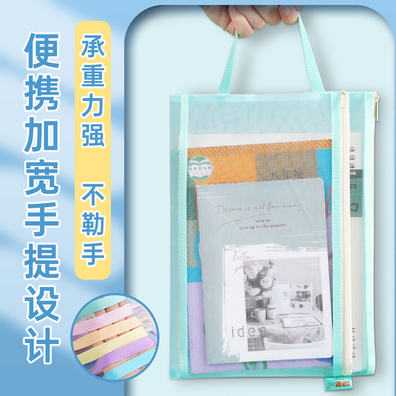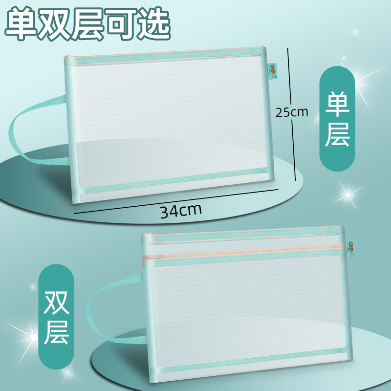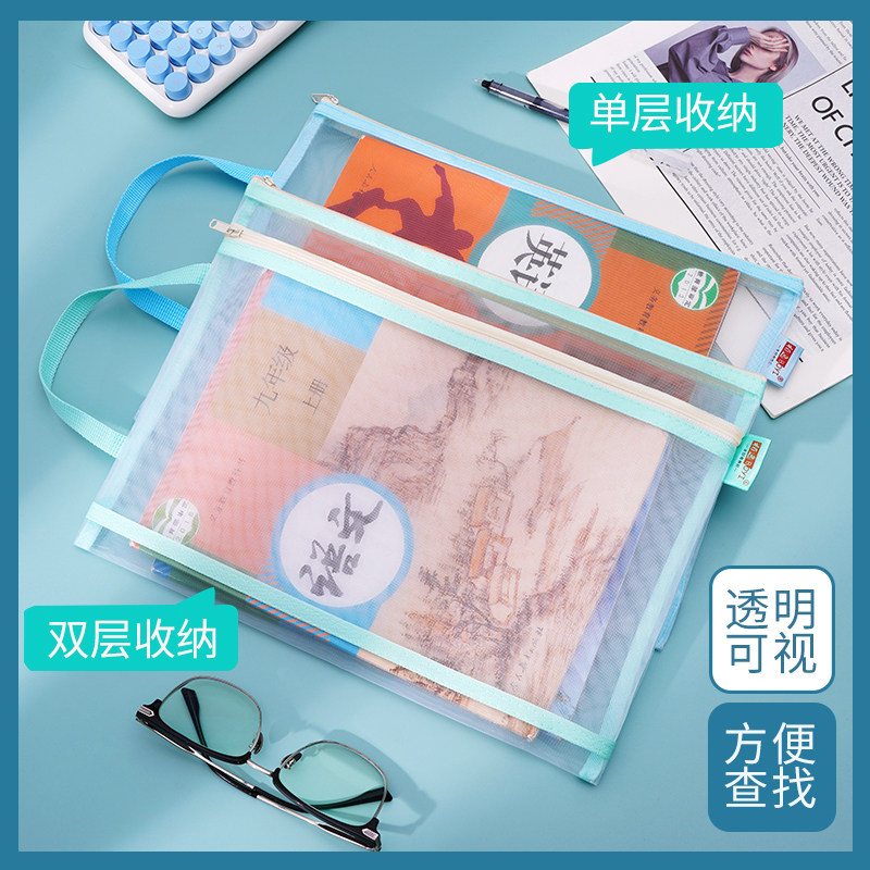 a4文件袋透明拉链式 补习手提袋尼龙网纱资料袋A4双层大容量档案袋学生科目分类袋书袋单层孕妇产检b超收纳袋