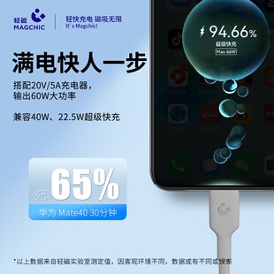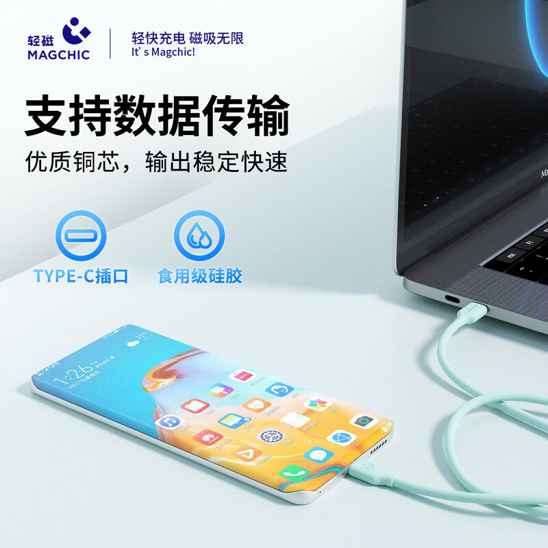 轻磁Type 0.3m便携短线适用于安卓手机华为小米iPhone15手机数据传输快速充电 C液态硅胶60W超级快充数据线1m