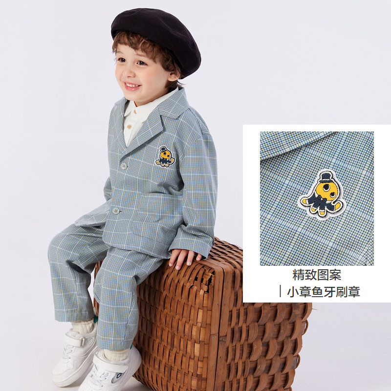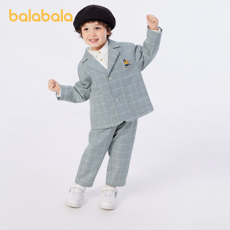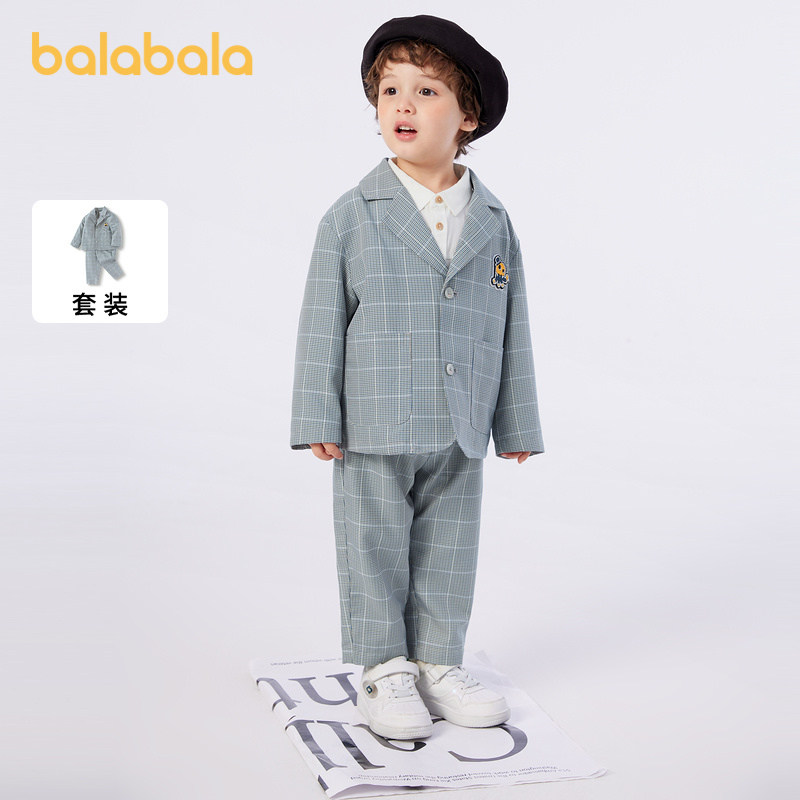 巴拉巴拉男童长袖 儿童春秋小童宝宝千鸟格两件套洋气休闲 套装