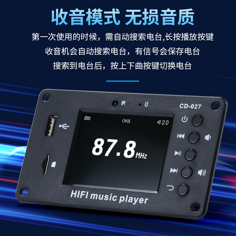 板时间显示 器2.8寸彩屏音频解码 新款 蓝牙5.1车载歌词同步无损解码