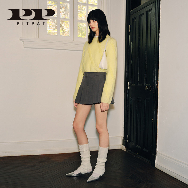 上衣 新款 Karin复古设计感马海毛混纺针织毛衣淡黄色女2024春装