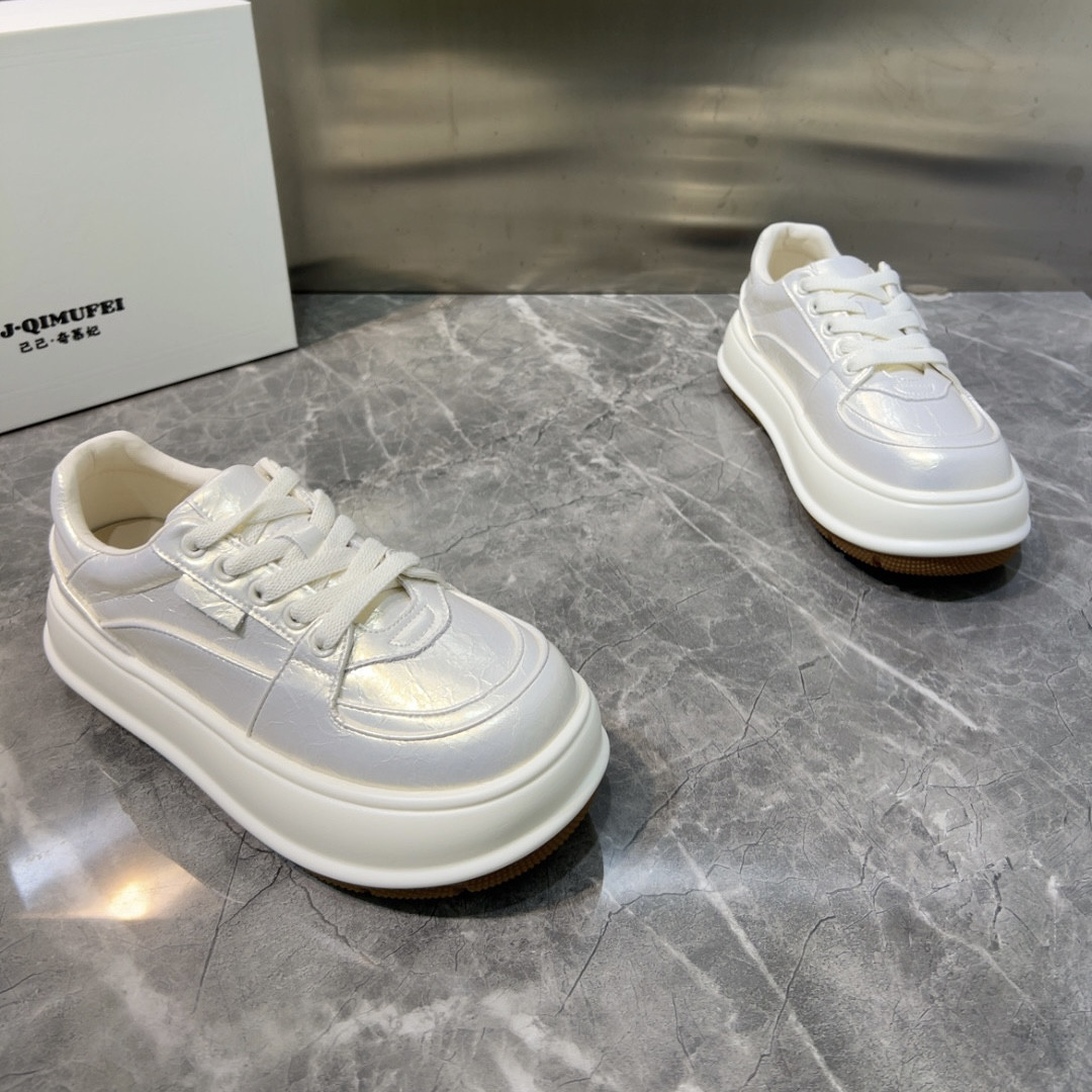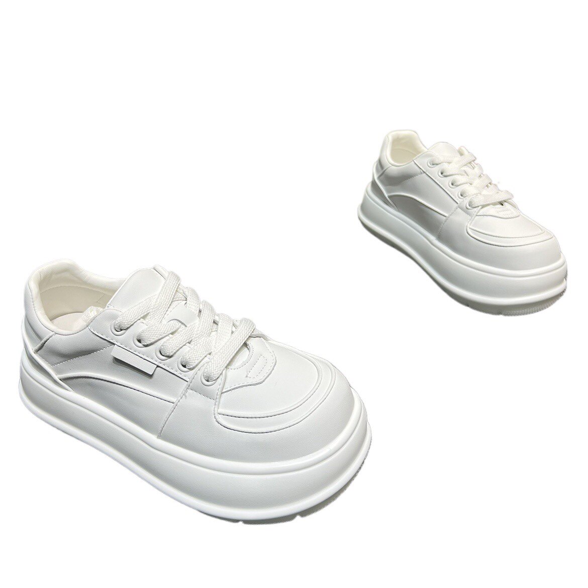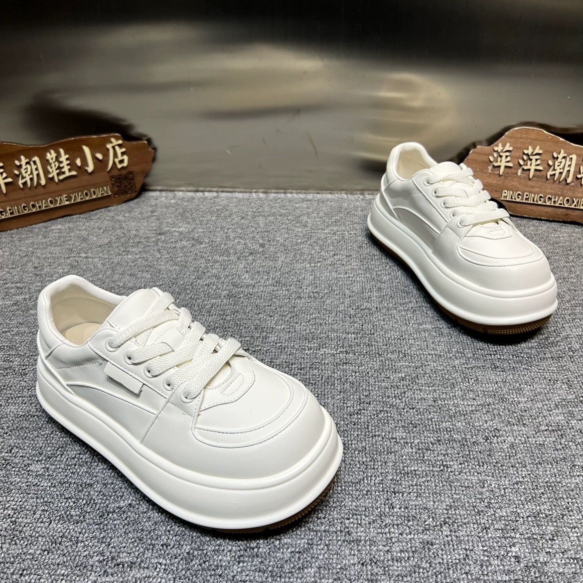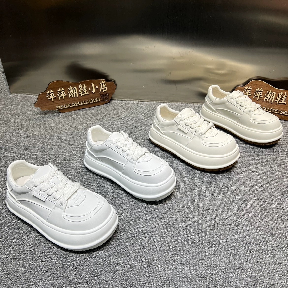 舒适百搭休闲哆 圆头运动板鞋 大头丑萌真皮厚底小白鞋 2024春秋新款
