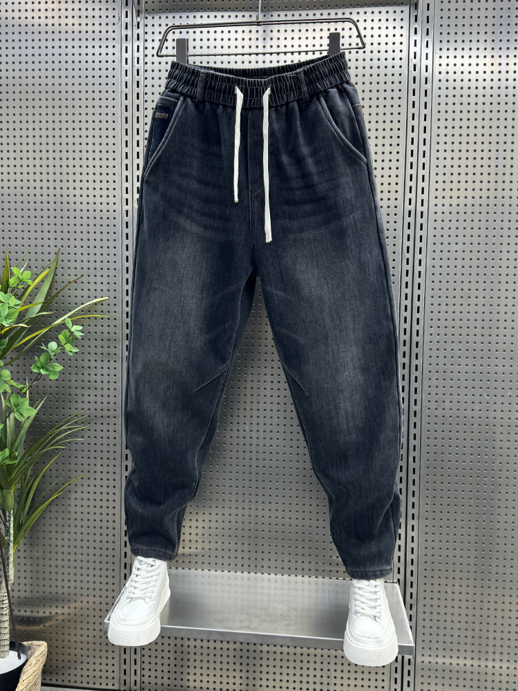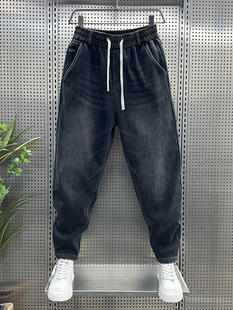 宽松裤 男士 潮牌小脚裤 潮流哈伦裤 2024秋冬加绒厚款 弹力长裤 牛仔裤