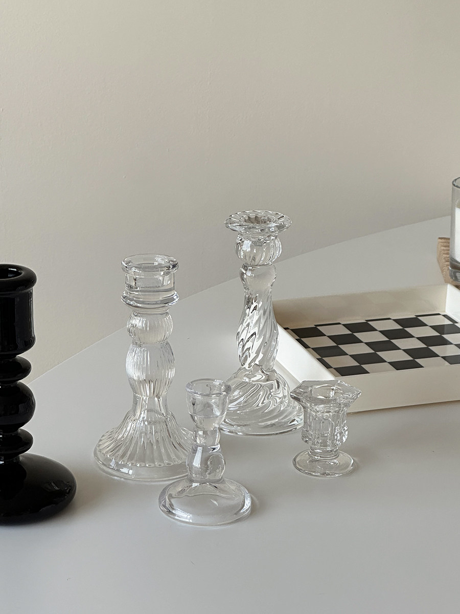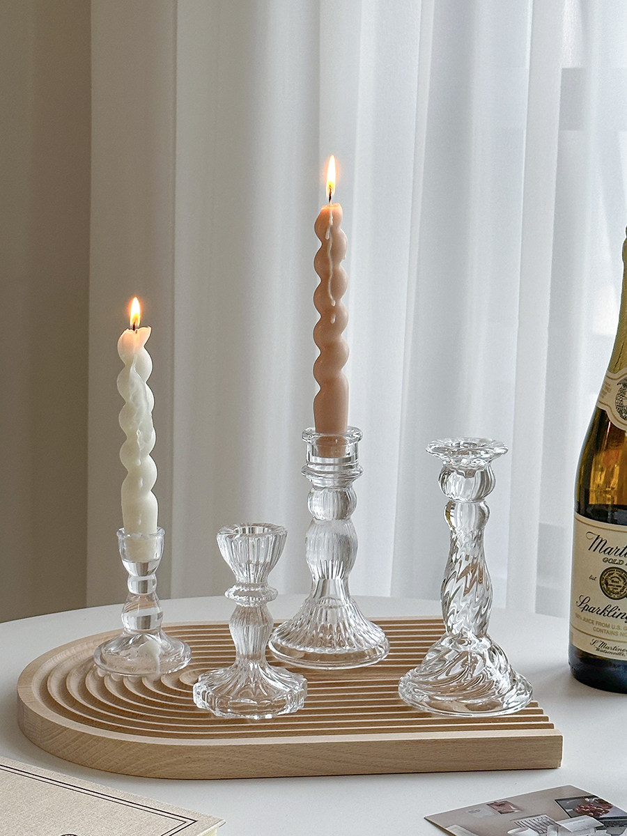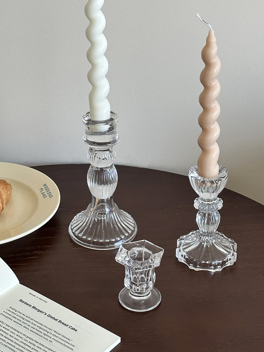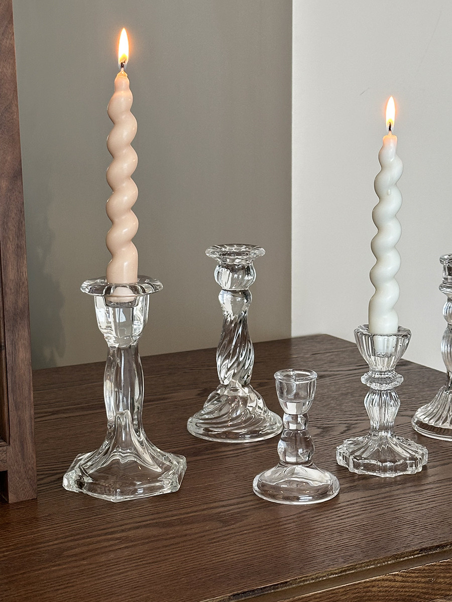 欧式 饰摆件ins拍照道具长蜡烛香薰蜡烛小烛台 复古玻璃烛台餐桌装