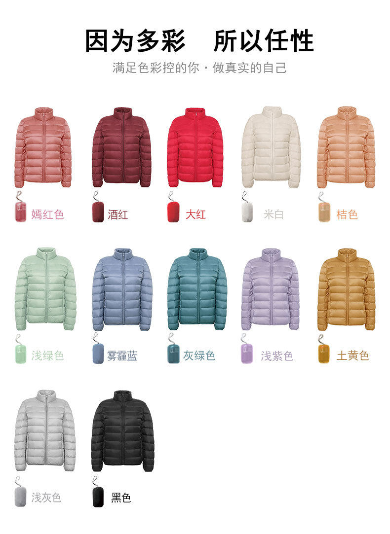 鸭绒休闲外套 内胆学生立领修身 试衣间女装 冬百搭轻薄羽绒服女短款