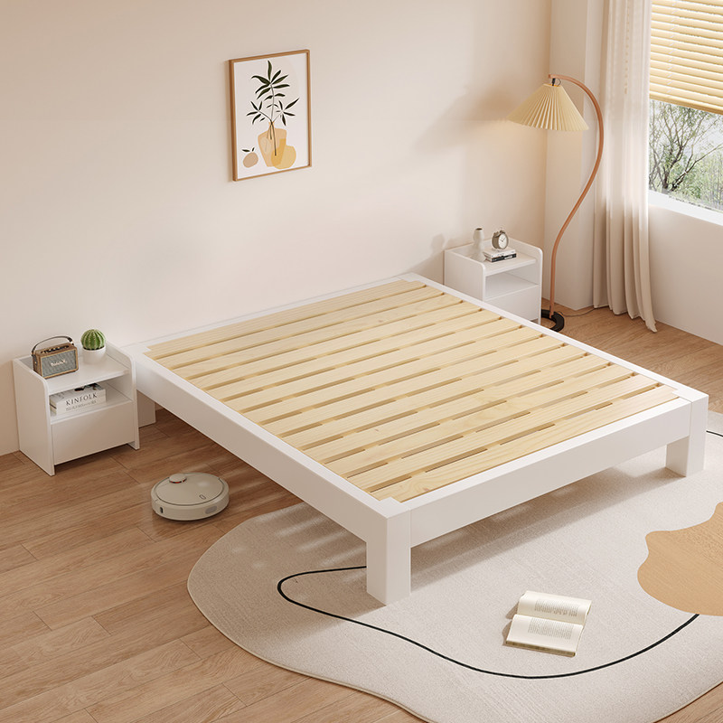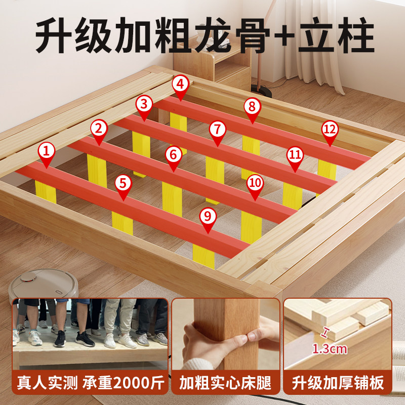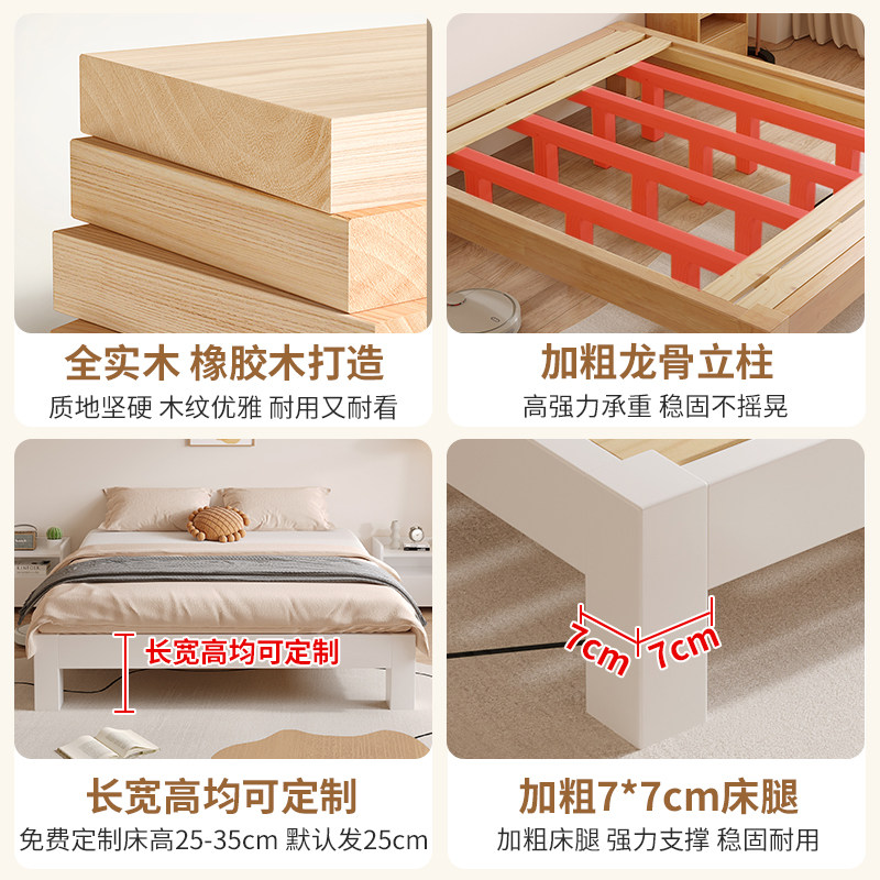 实木床无床头简约现代双人床橡胶木排骨架单双人地台床定制榻榻米
