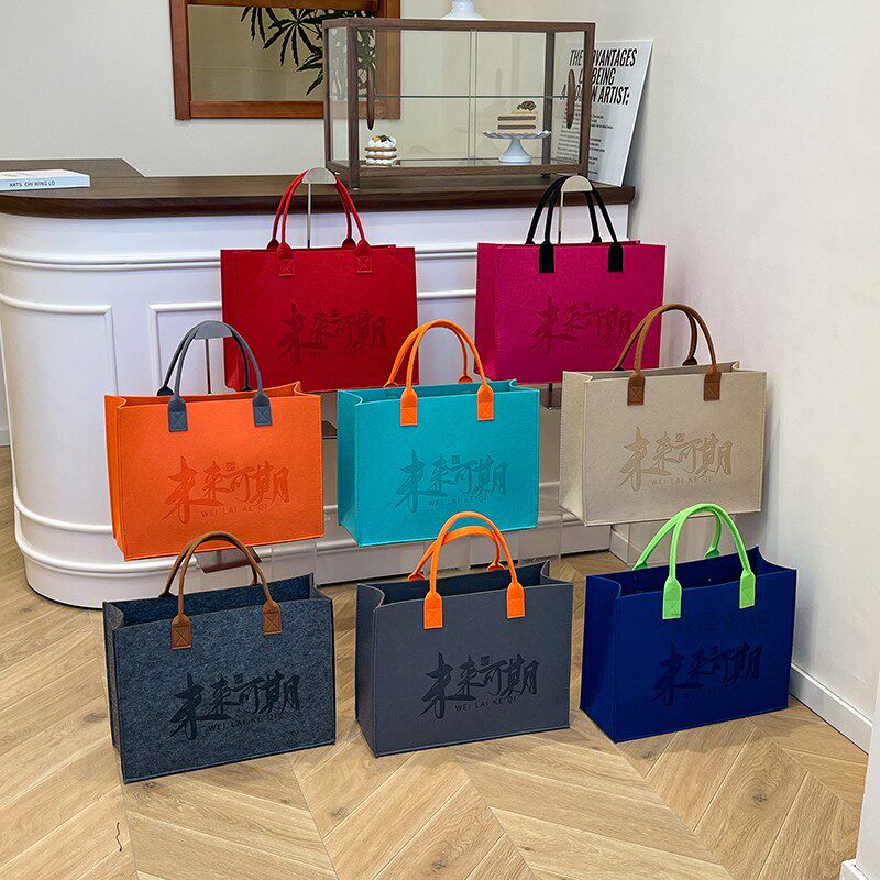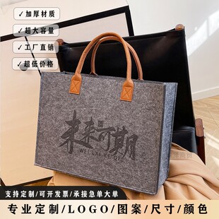 新款 撞色毛毡包手提袋定制logo大容量手提袋伴手礼广告购物袋定制