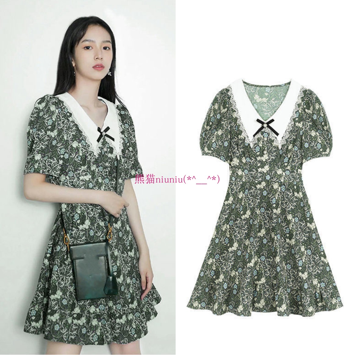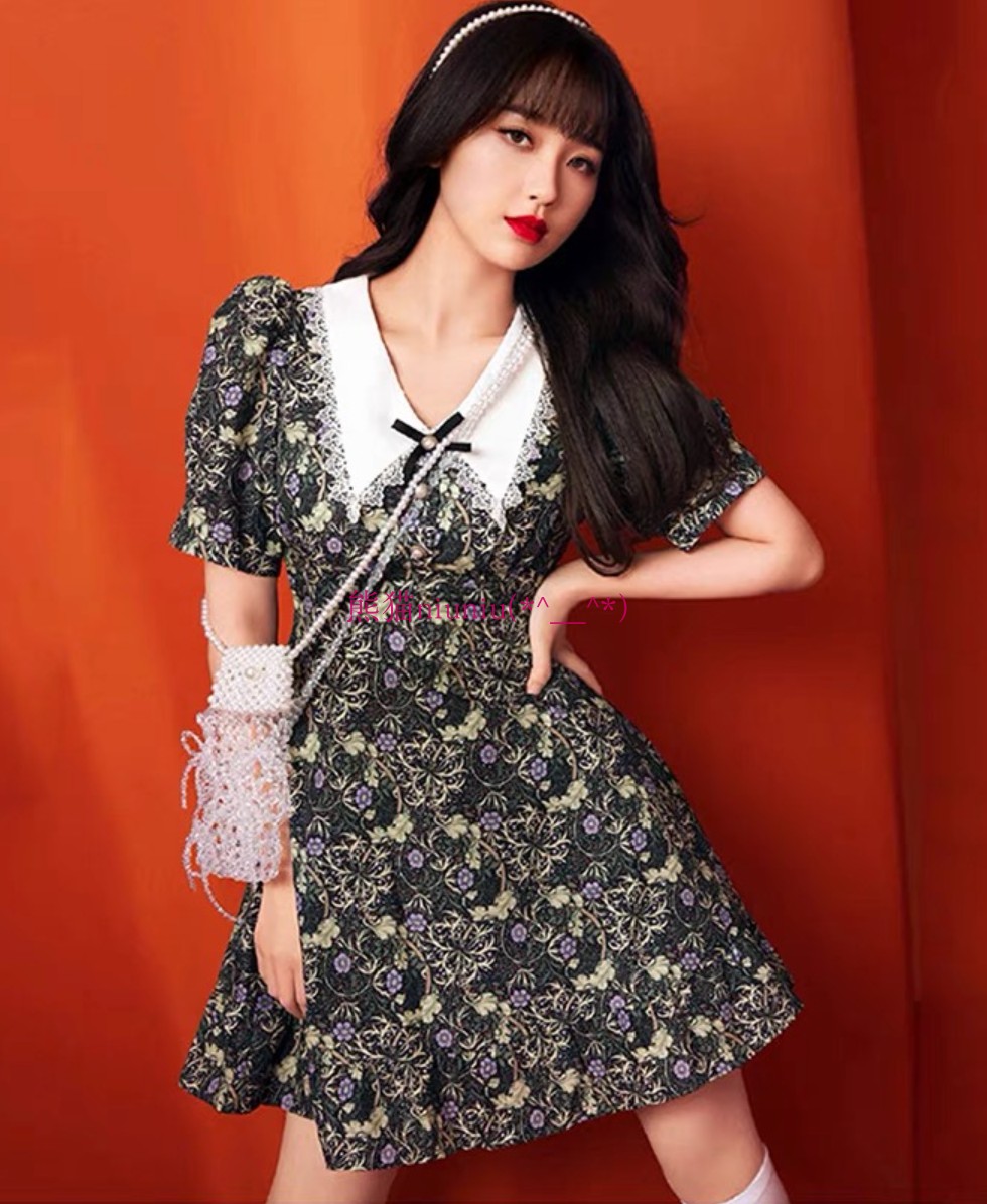 M家 原厂追加D 周也虞书欣秀 高级感 V领茶歇收腰碎花连衣裙 法式