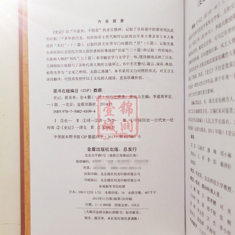 金盾出版 撰著 社 司马迁 史记普及本全四册