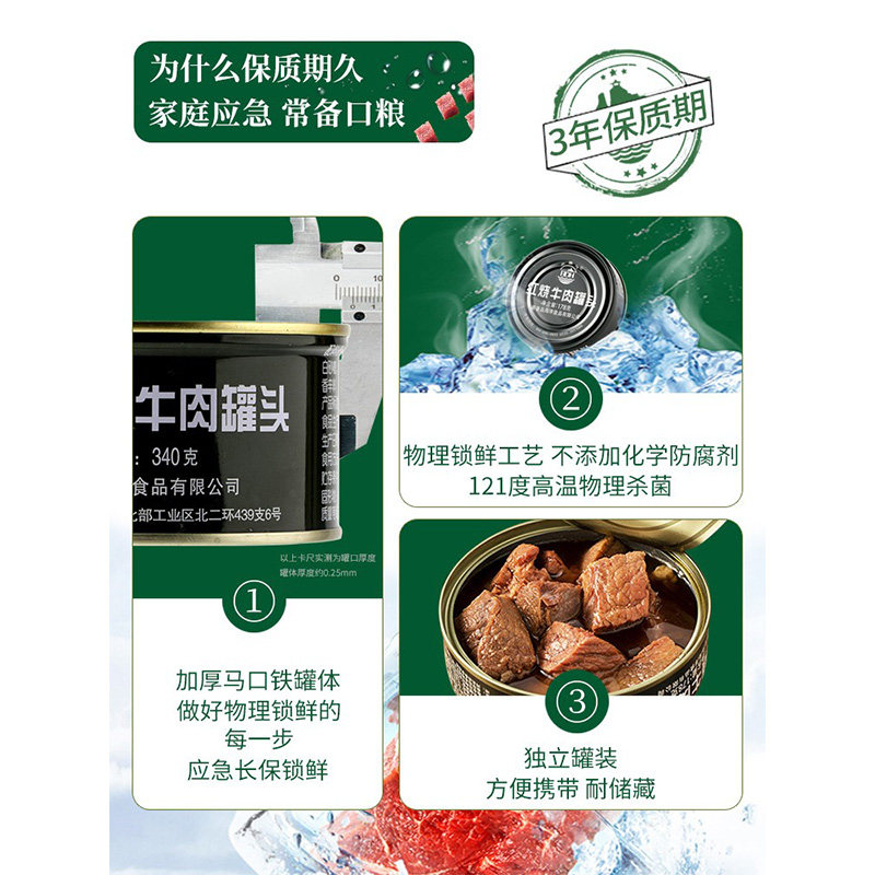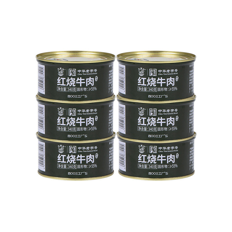 北戴河牌红烧牛肉罐头340g即食午餐肉户外家庭末日应急储备食品