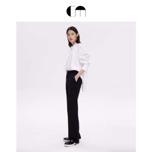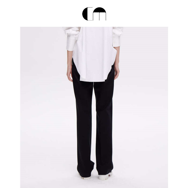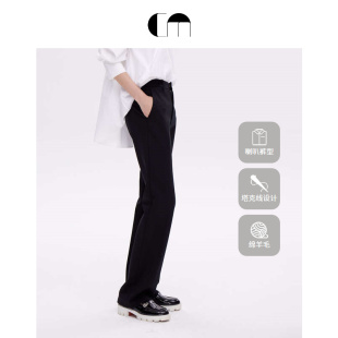 MOI吕燕设计师早春女装 COMME 简洁百搭绵羊毛黑色微喇叭裤 热卖