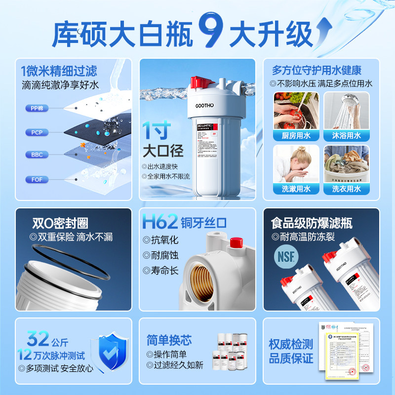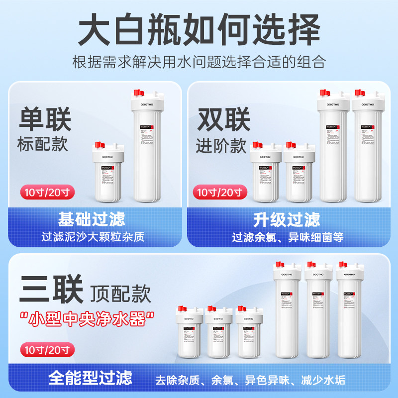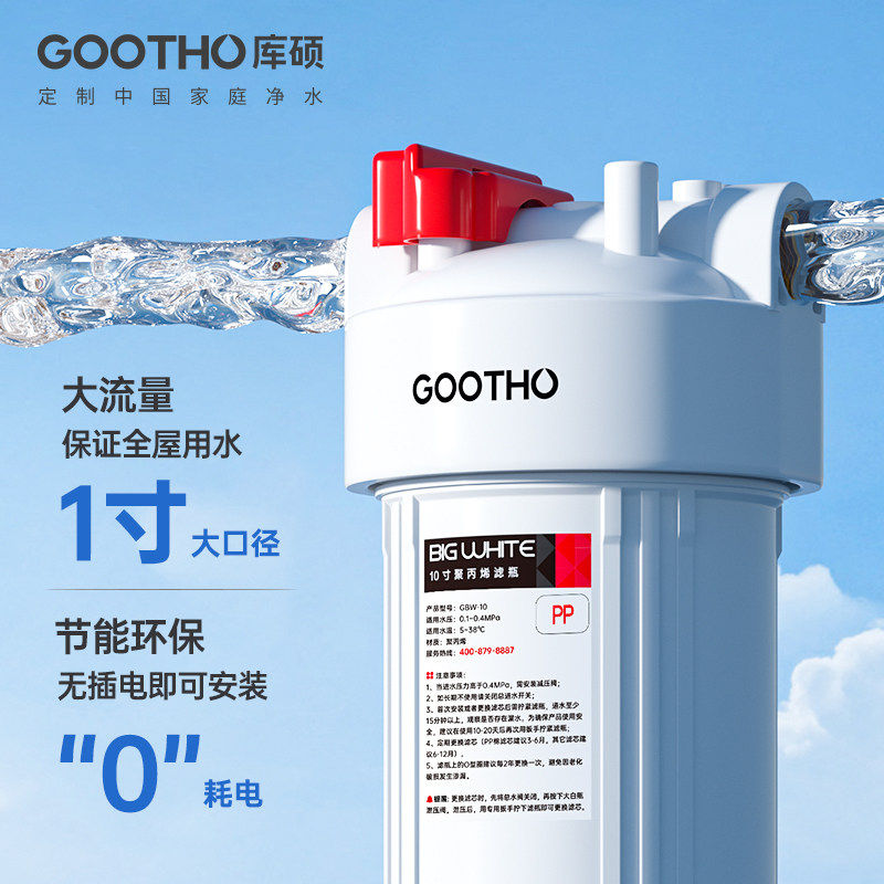 GOOTHO库硕大白瓶前置过滤器家用自来水全屋过滤大流量滤芯净水器