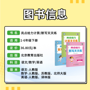 北师大版 江苏版 小学口算大通关速算计算练习册能手同步天天练 一二三四五六年级下册上册数学人教版 2026春亮点给力计算天天练苏教版