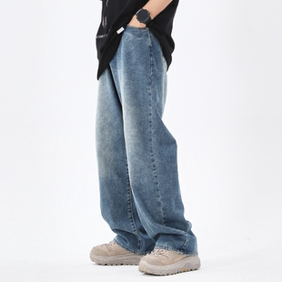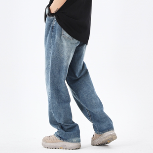 直筒简约宽松休闲长裤 男秋冬高级感水洗百搭阔腿裤 子 牛仔裤 WAOOO