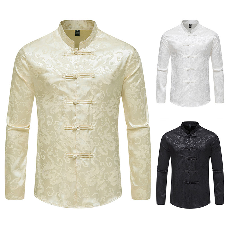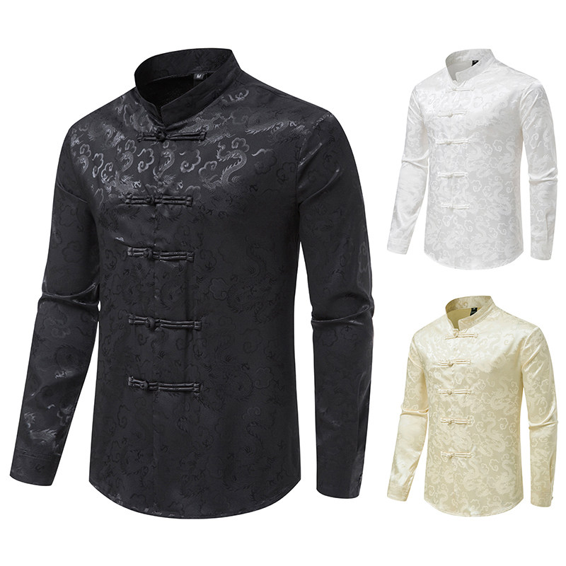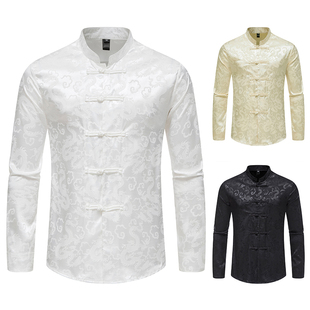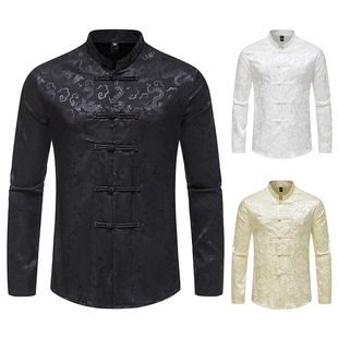 2024秋季 盘扣黑色白色衬衫 汉唐风装 中国风潮流中式 衬衣男长袖 大码