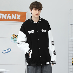 复古拼接少年感牛仔外套男女春秋季 中性风宽松痞帅百搭夹克牛仔衣