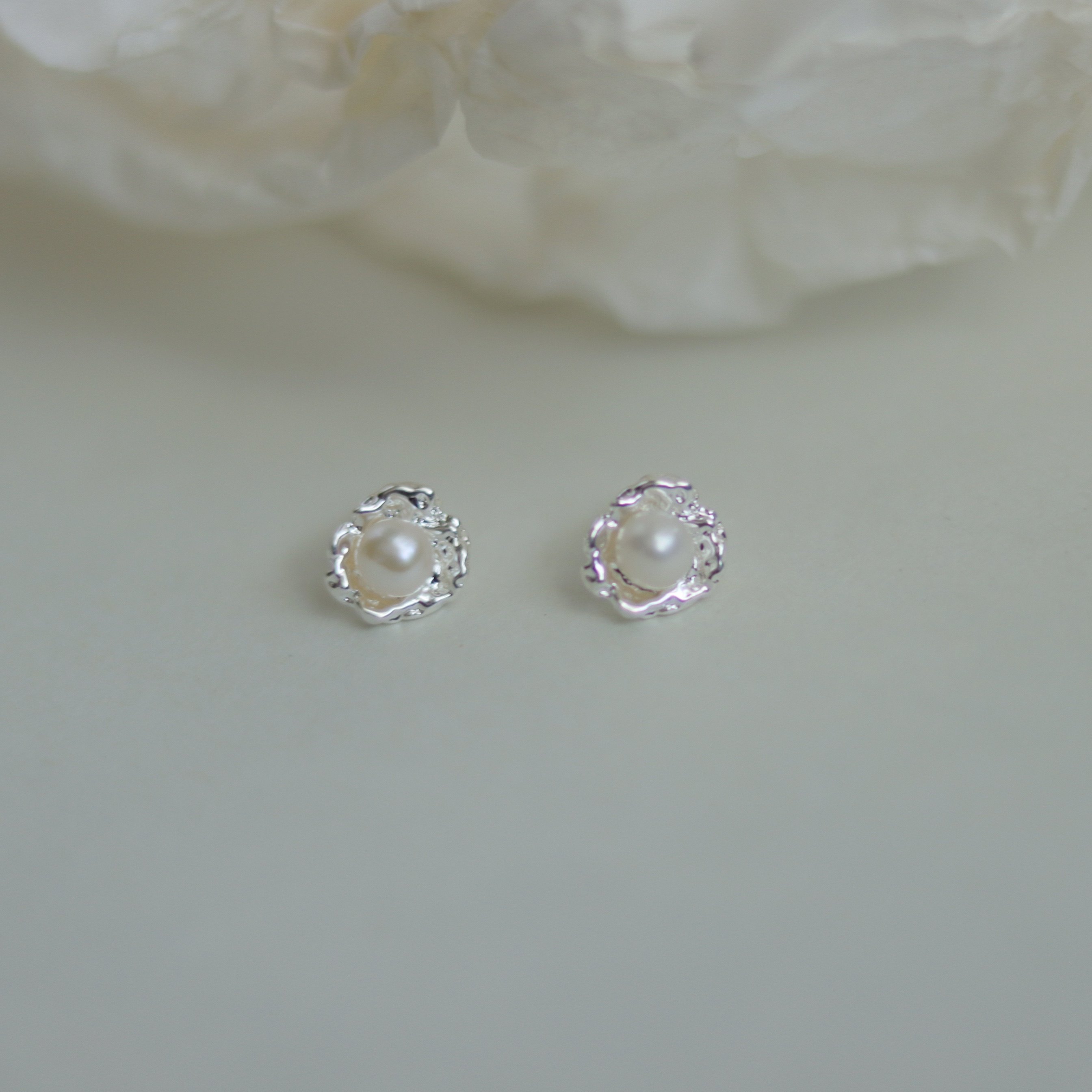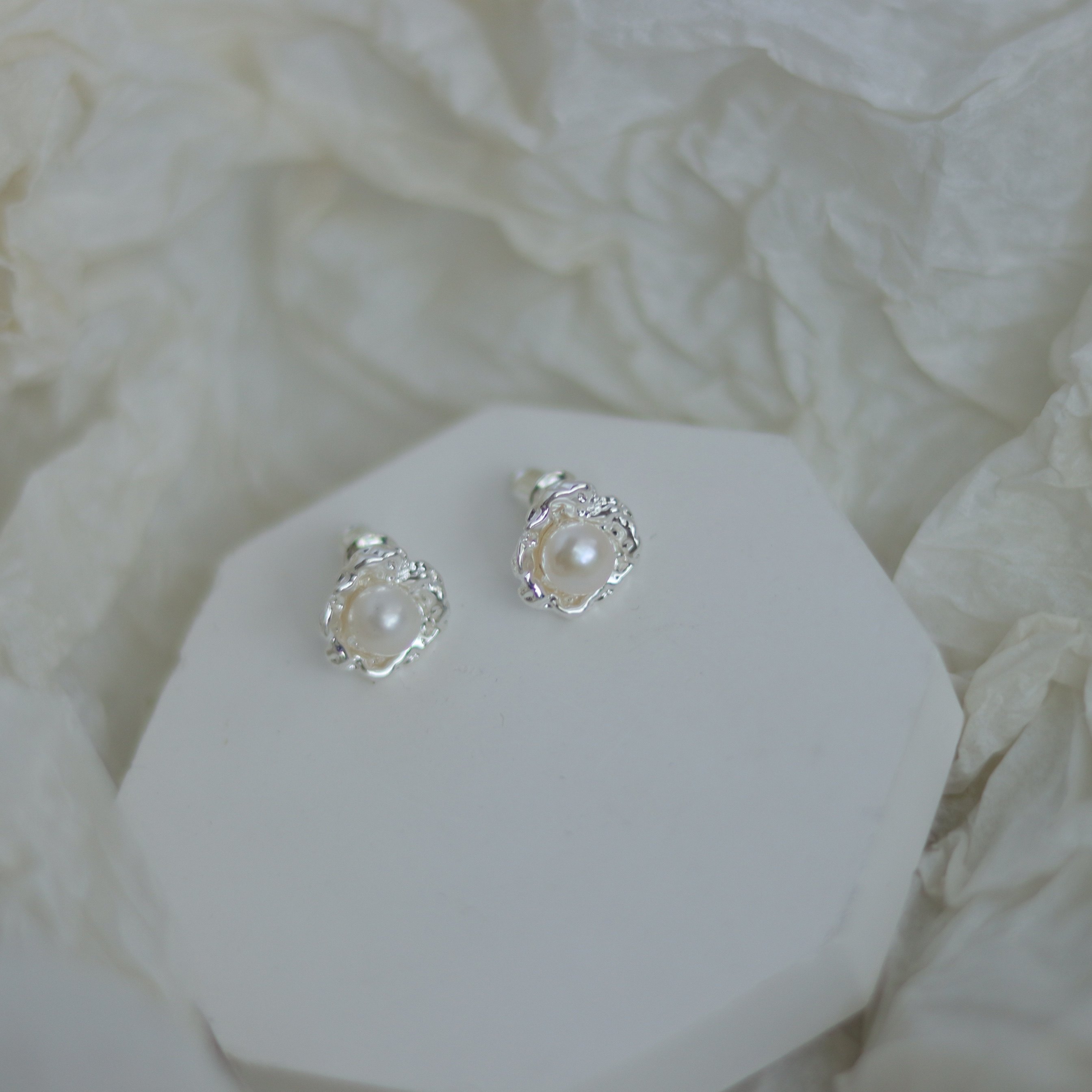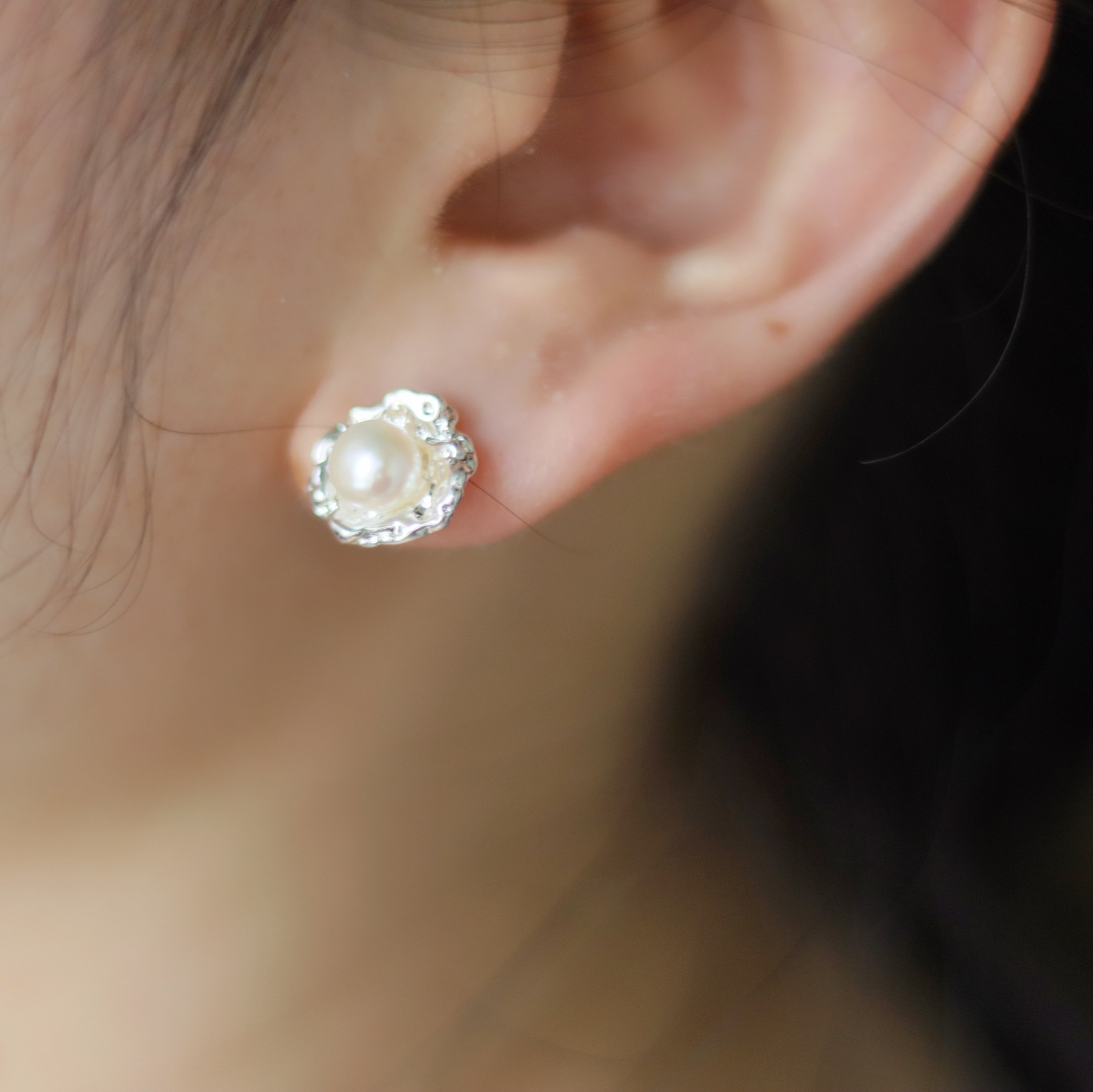 sanswood森吾S925纯银原创天然珍珠馒头耳钉女睡觉洗澡不用摘必入