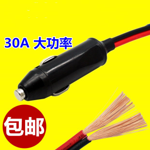汽车车载点烟器插头纯铜大功率耐高温充气泵延长线12v24v通用公头