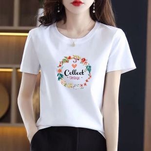 宽松纯棉体恤女士上衣 专柜撤柜休闲印花T恤短袖 清仓外贸 品牌女装