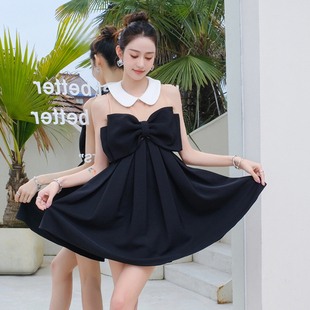 三与十三 日系百搭宽松显瘦连衣裙女丝绒花苞背带裙女 黑色胶片机