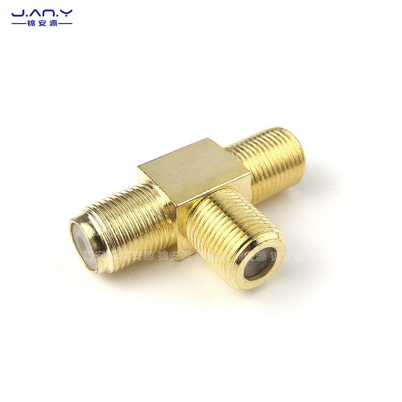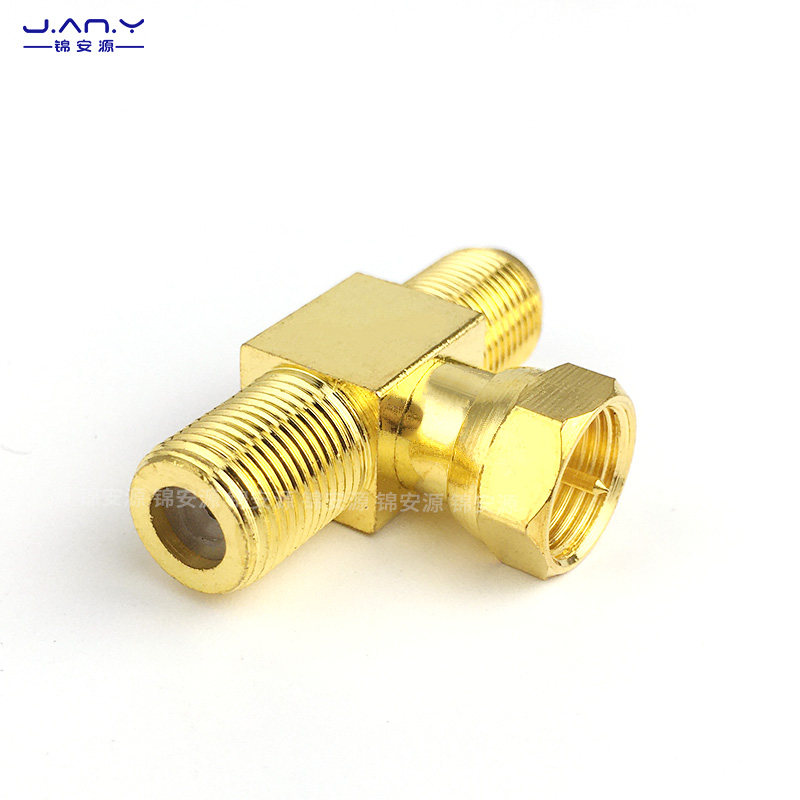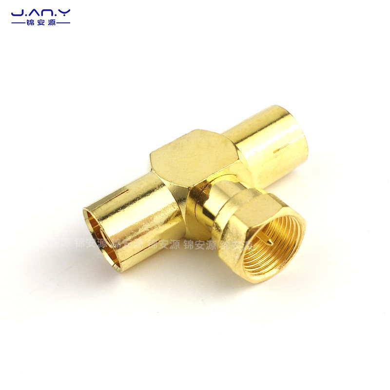镀金9.5TV有线电视转接头 RF天线机顶盒T型转换头 英制F公母三通