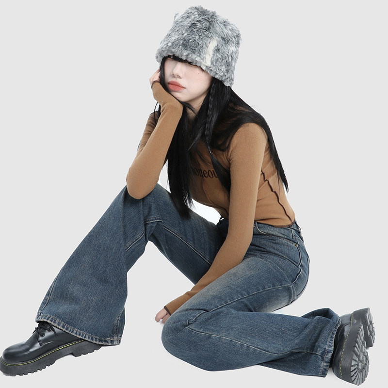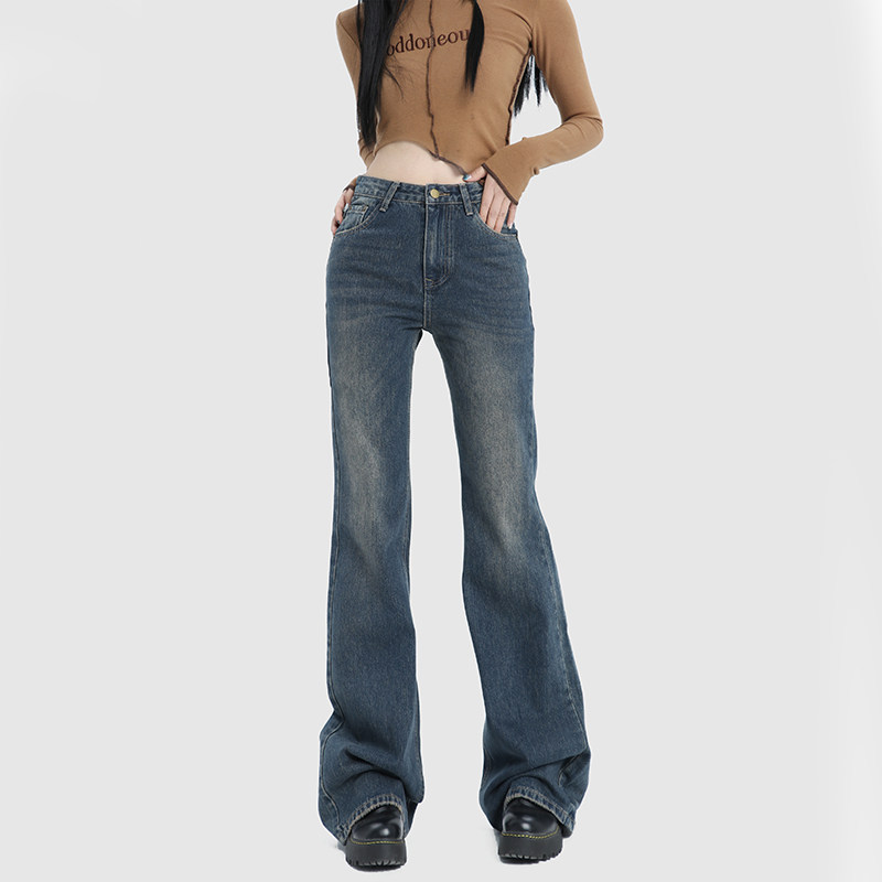 水洗复古宽松休闲直筒阔腿牛仔裤 RJVO时尚 新款 女春秋季 高街微喇裤
