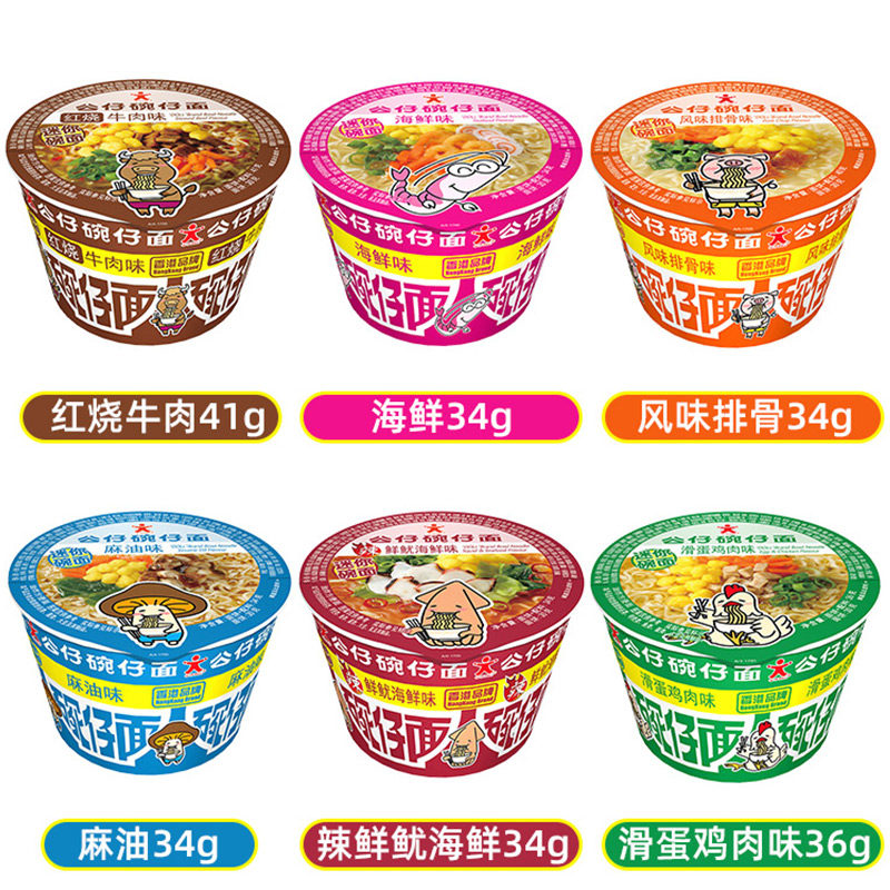 香港公仔面碗仔面整箱迷你碗面湾仔面海鲜味小碗泡面方便面小杯面