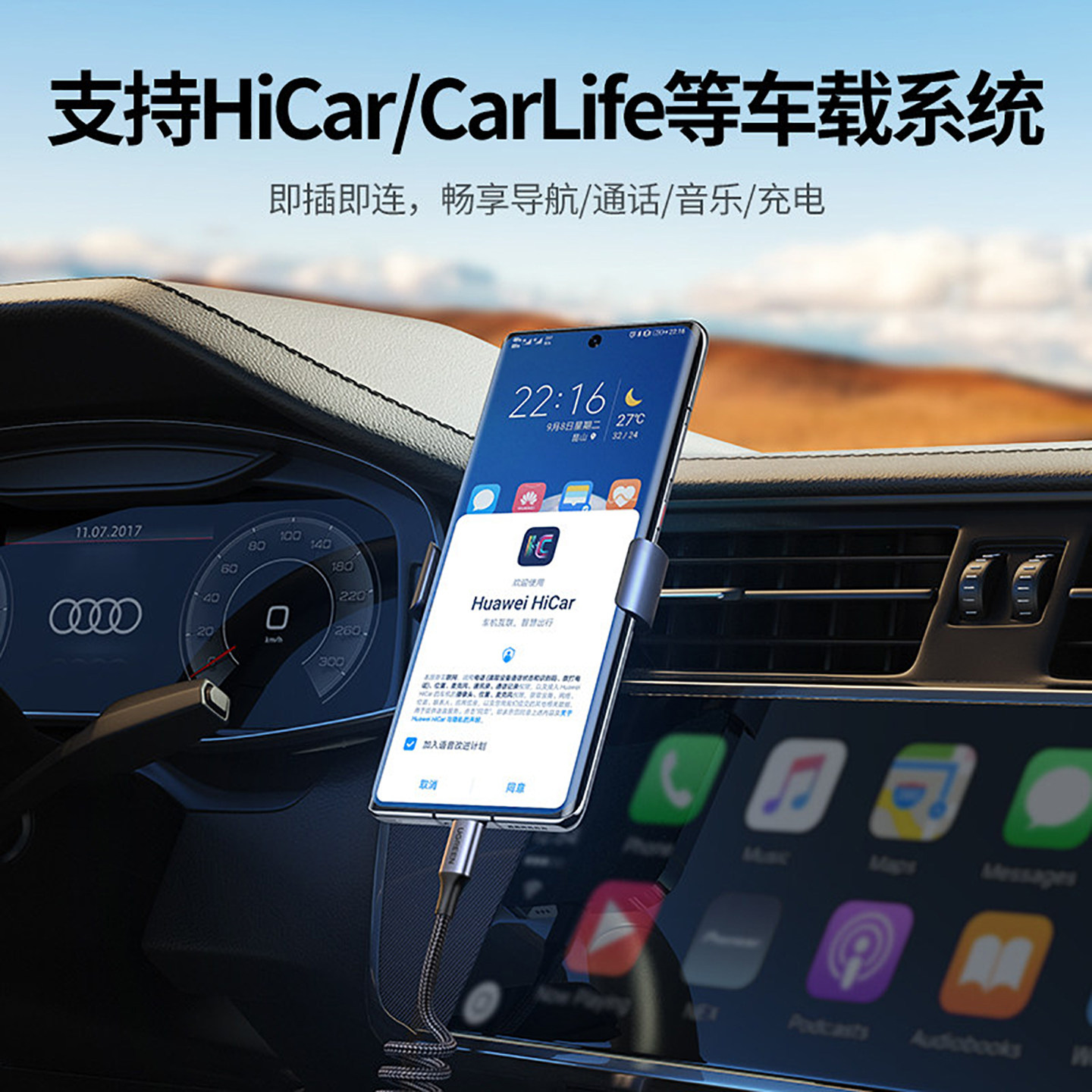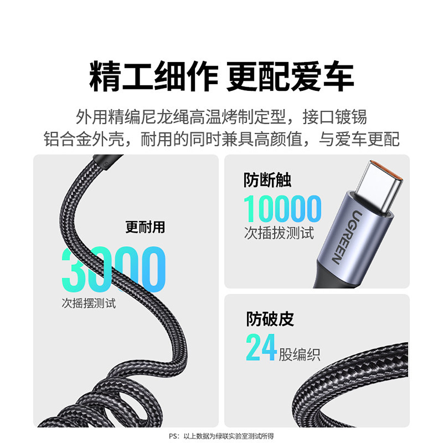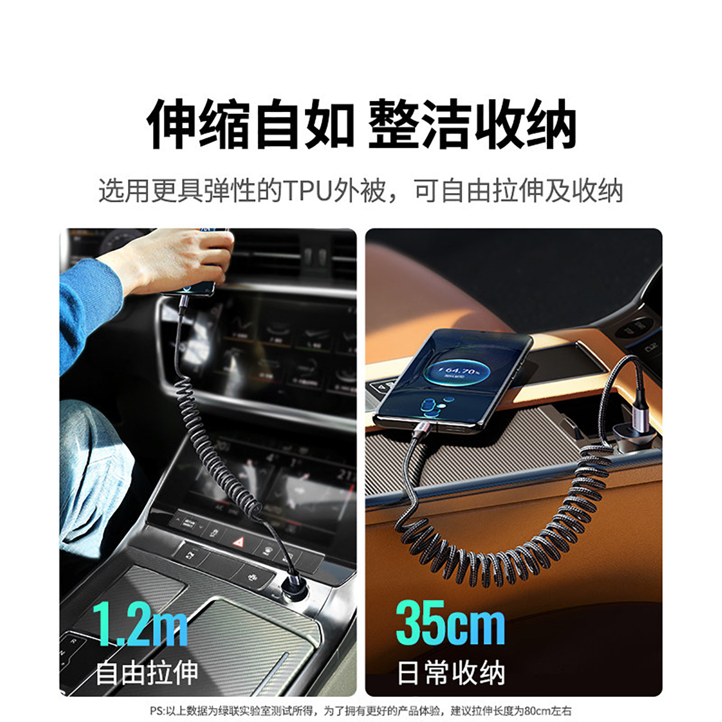 绿联弹簧伸缩数据线编织type c适用华为小米安卓手机tpyec超级快充HiCar车载投屏键盘航插6a5a摩托USB转充电