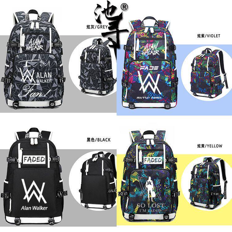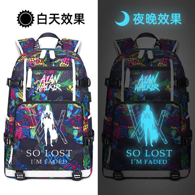 Walker电音DJ潮牌双 背包Alan 2024新款 夜光艾伦沃克书包faded同款
