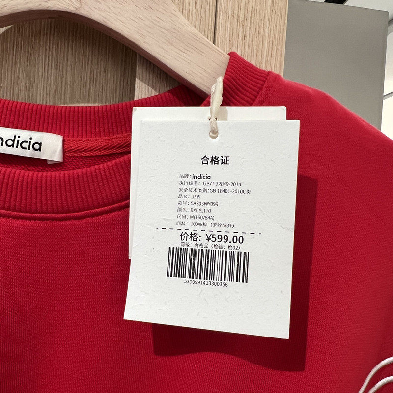 新年氛围卫衣吊牌价599 春款 indicia5A303WY099专柜正品 标记女装