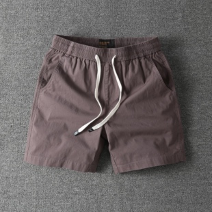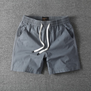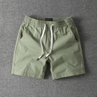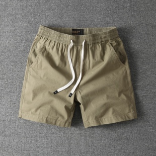 男士 纯棉短裤 高档松紧腰宽松休闲直筒工装 四分裤 男 夏季 沙滩裤 薄款