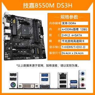 B550M 小雕A520M K主板支持5500 5700X 技嘉B450M 5600G DS3H