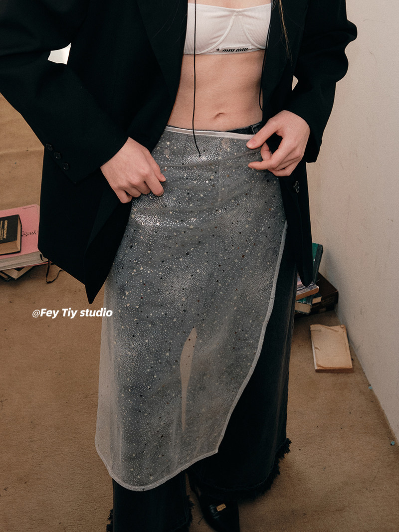 feytiy 叠搭外穿微透蕾丝纱裙帘子屁帘子白色韩国春夏半身裙