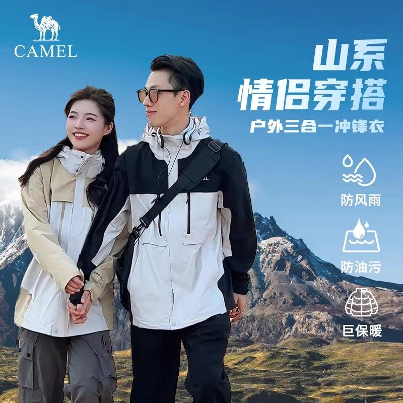 Camel骆驼户外羽绒三合一冲锋衣抓绒登山外套男女 赵昭仪同款