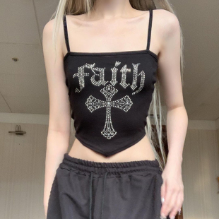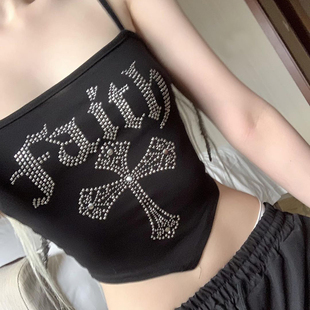 烫钻吊带背心2026夏季 T恤 新款 显瘦打底衫 潮 辣妹修身 鬼马少女时尚