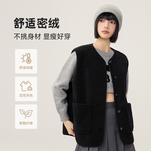雪中飞2025秋冬新款 女士圆领摇粒绒马甲外套百搭休闲居家亲肤舒适