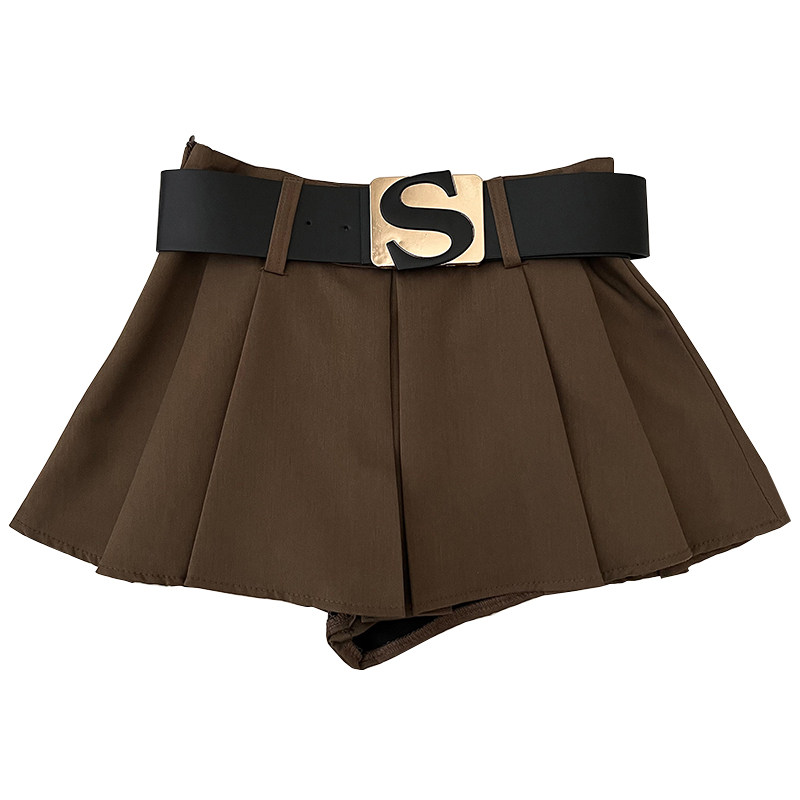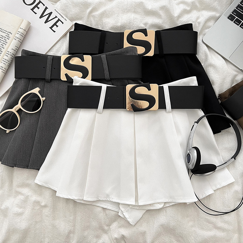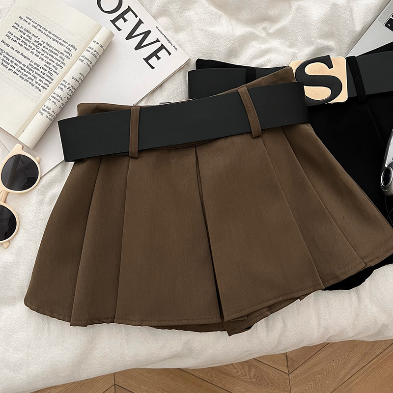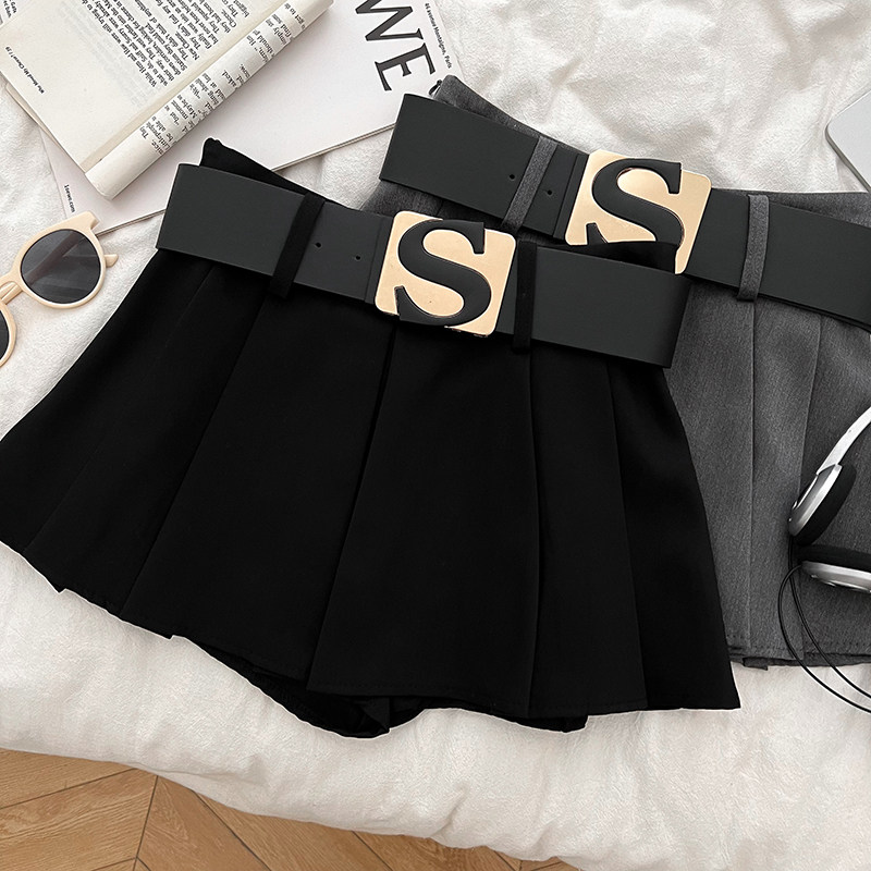 设计感休闲百搭字母腰带高腰显瘦半身裙防走光短裙百褶裙a字裙女