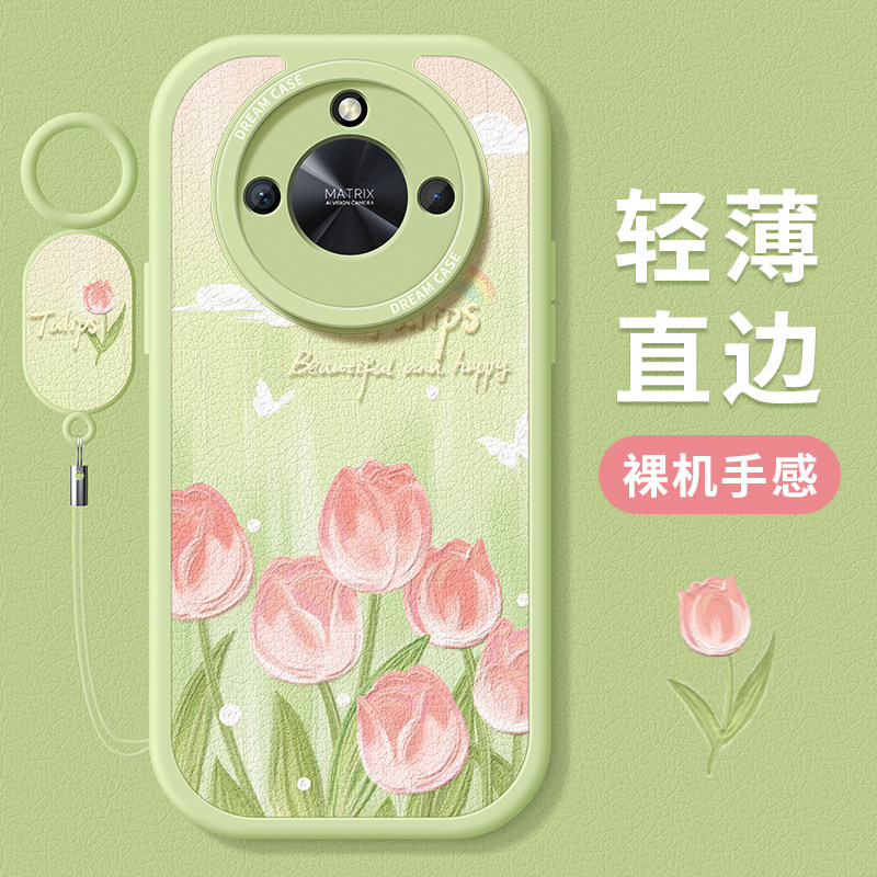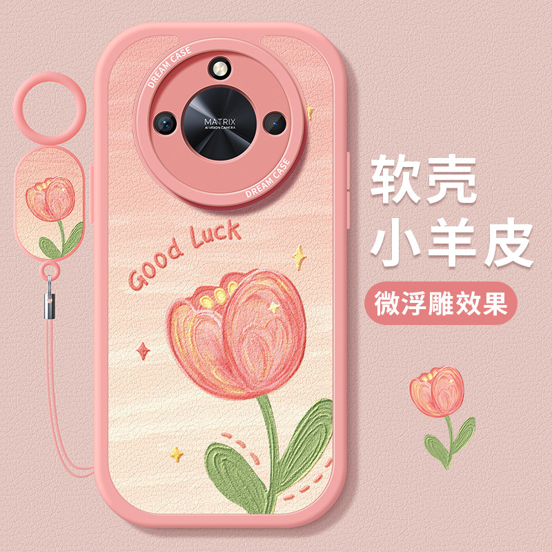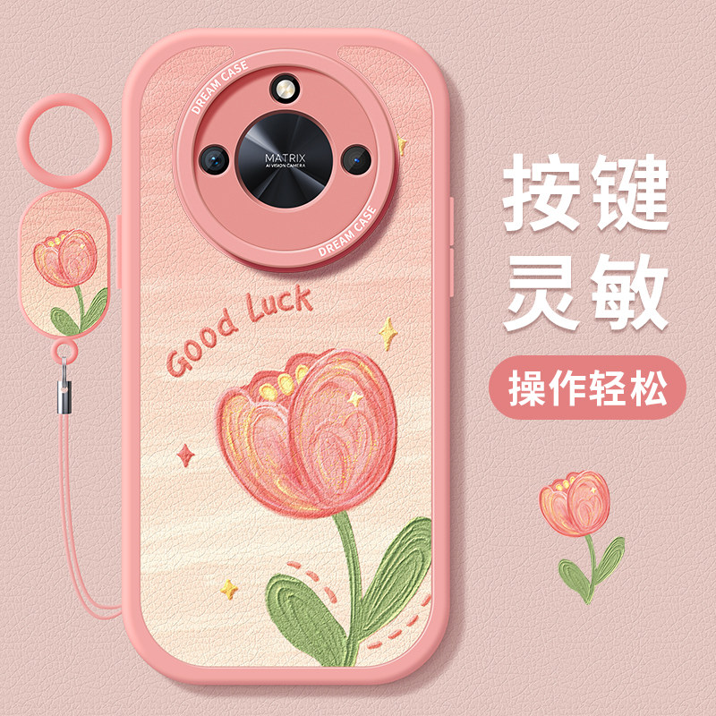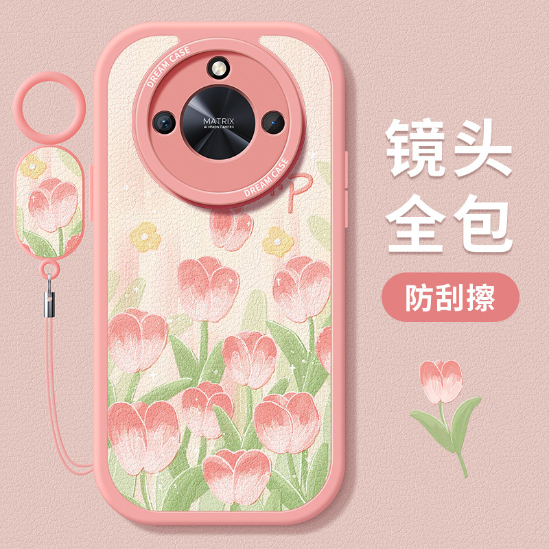 适用荣耀x50手机壳女款 x40i保护套郁金香花朵x40gt全包防摔x50i硅胶X50GT磨砂小清新honor华为软外壳粉色新款