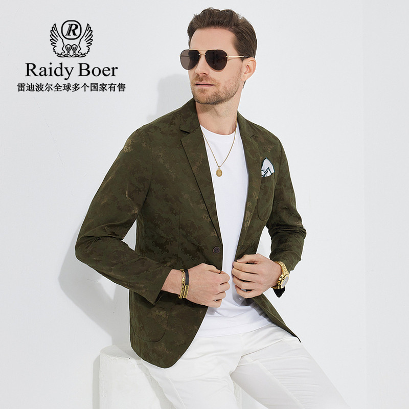 ELI 真丝羊毛混纺平驳领釉面牛角扣休闲西服外套男春秋 杜松